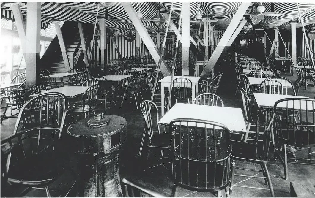 Ресторан на большом пароходе с гнутыми венскими стульями