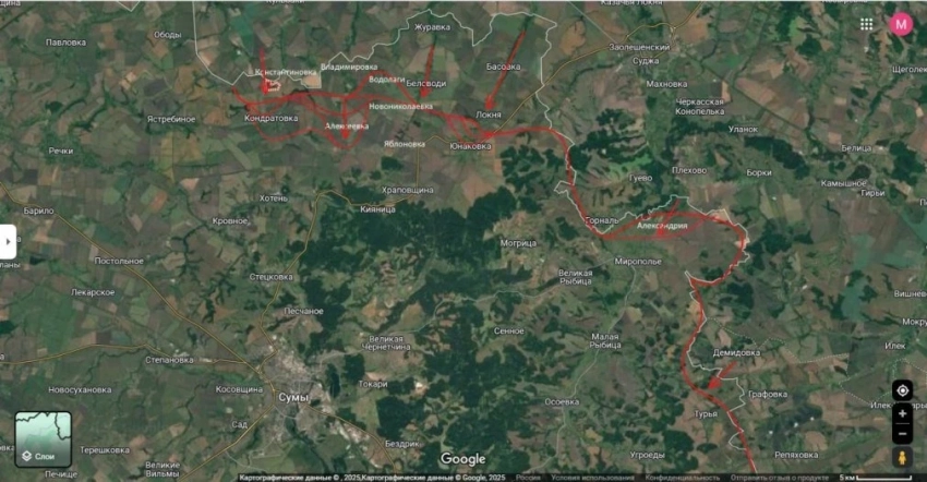 Также наши части наступают на Мирополье. Здесь логика тоже понятна. Именно отсюда работают вражеские дронщики по логистике нашей наступающей группировки. И потому занятие Мирополья позволит заметно упростить нам движение дальше, сообщает Юрий Подоляка в своём Telegram-канале.