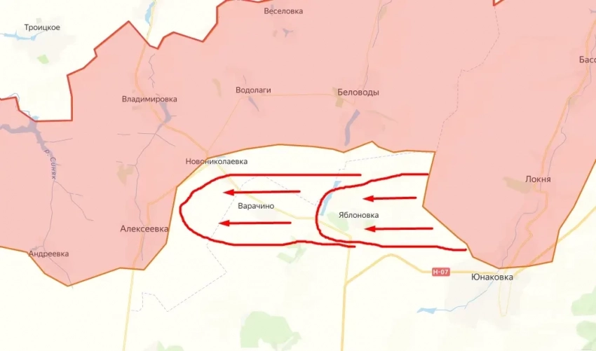 Стоит отметить, что движение в сторону вышеупомянутого населённого пункта было очевидным. По сути, сегодня взяв под свой контроль Яблоновку и Варачино, а ранее Новониколаевку, подразделения ВС РФ выровняли линию фронта, ликвидировав мешок между Алексеевкой и Юнаковкой.
