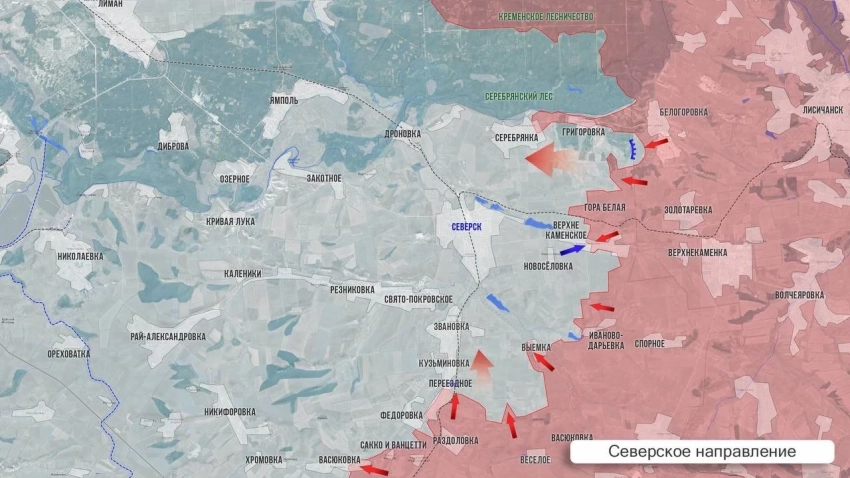 На Северском направлении наши подразделения продолжают наступление на Северск, продвигаясь на северо-восточной окраине города. Половина Серебрянки под контролем армии Росиии. Есть успехи южнее Григоровки.