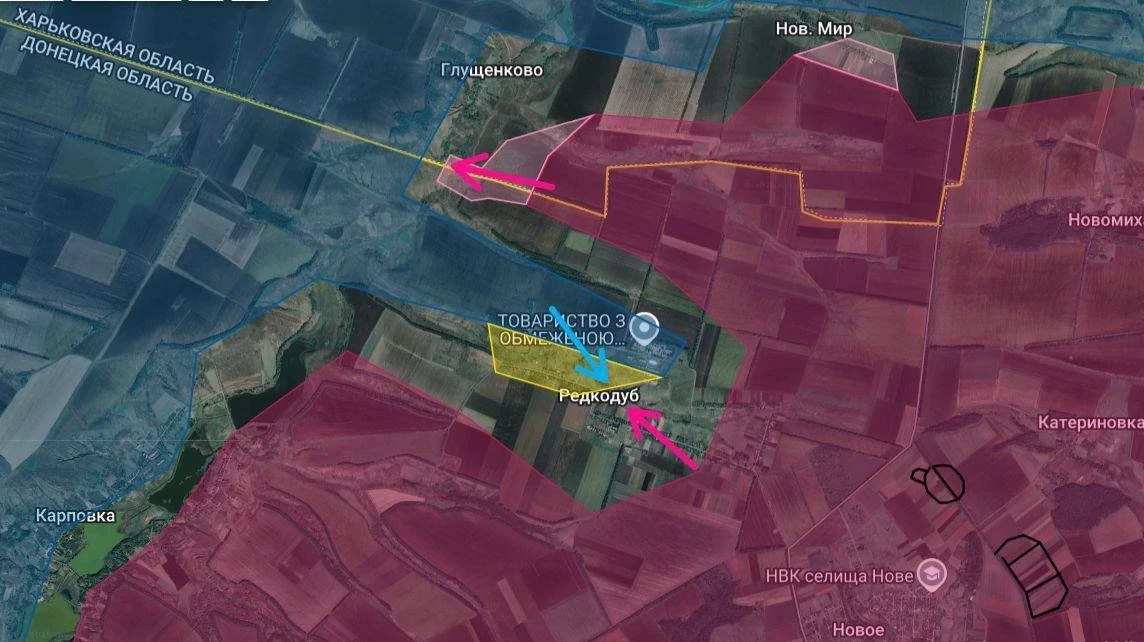 На Краснолиманском участке российские бойцы после тяжёлых боёв вошли на окраины Глущенково и Нового Мира в Харьковской области. ВСУ постоянно пытаются контратаковать и ворваться в Редкодуб, рискуя попасть в окружение.