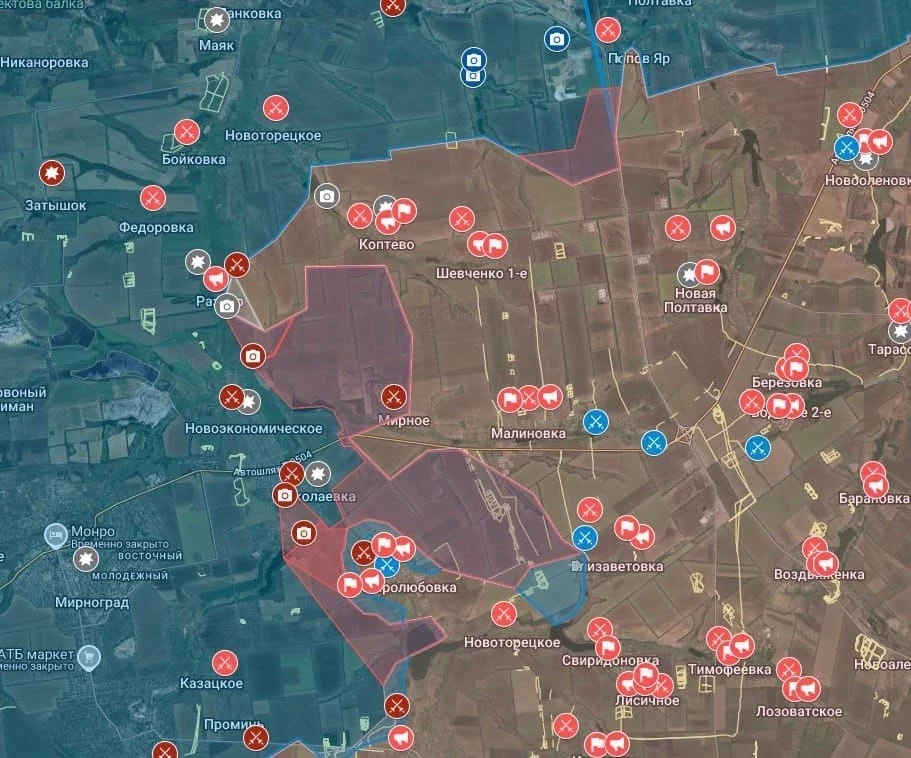 В районе Мирного силы противника фактически зажаты в коридоре, поскольку ВС РФ активно наступают с севера и юга, создавая угрозу оперативного окружения. Это мешает подразделениям противника организованно отходить с этого участка и ставит их в крайне неблагоприятное положение, сообщает "Военное обозрение".
