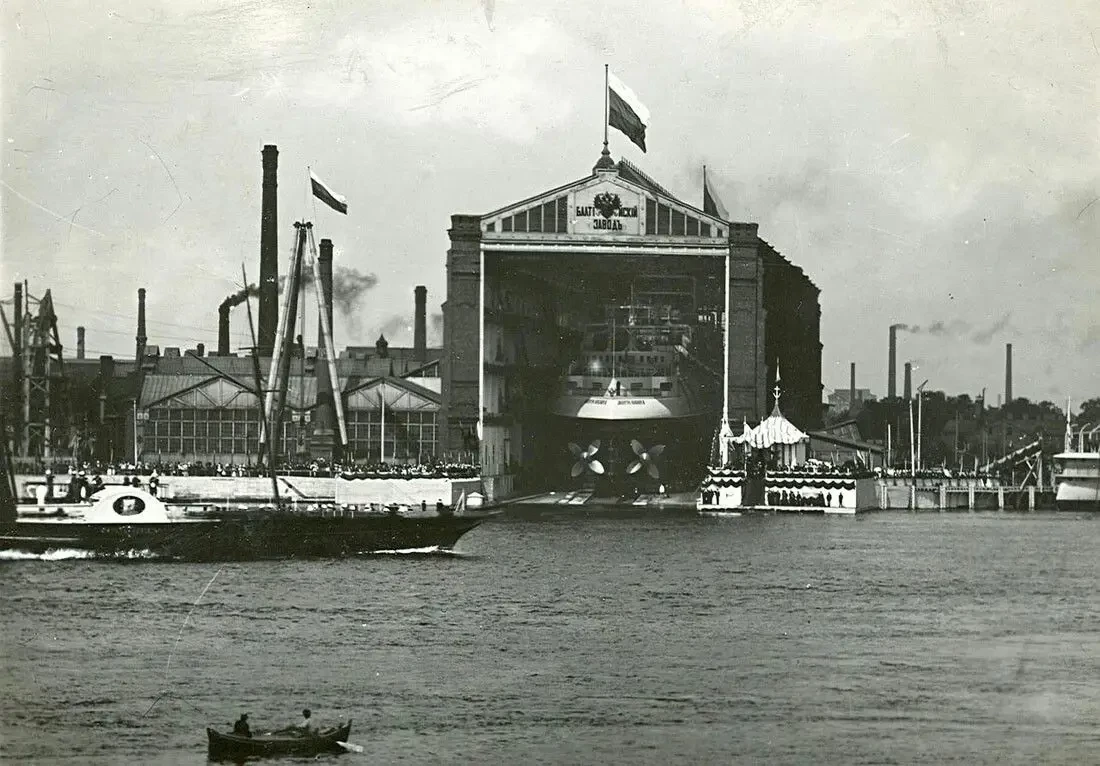 Балтийский завод был основан в 50-х годах XIX века англичанином Карром и был при рождении всего лишь чугунолитейной мастерской. В 1863 году в компанию с Карром вступил механик М. Макферсон, и возможности предприятия были расширены. Теперь оно могло заниматься прокаткой железа, строительством локомотивов и боевых кораблей. Морское министерство отнеслось к этому начинанию в высшей степени позитивно, дав хорошие заказы: предприятием было построено три монитора и броненосный башенный фрегат «Адмирал Лазарев». Также Балтийскому заводу были заказаны два клипера и броненосный фрегат «Герцог Эдинбургский», а также выданы ссуды общим размером до половины стоимости возводимых предприятием сооружений.