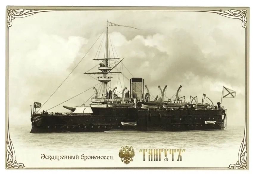 «Два наших новейших броненосца «Сенявин» и «Ушаков» находятся теперь в Учебно-артиллерийском отряде для ознакомления будущих комендоров с современными орудиями. Однако 10-дм пушки на них бутафорские. Стрелять из них запрещено, так как вследствие ошибки в чертежах они рвутся. Тем не менее, орудия было решено все-таки поставить на корабли, чтобы те хотя бы для вида походили на броненосцы».