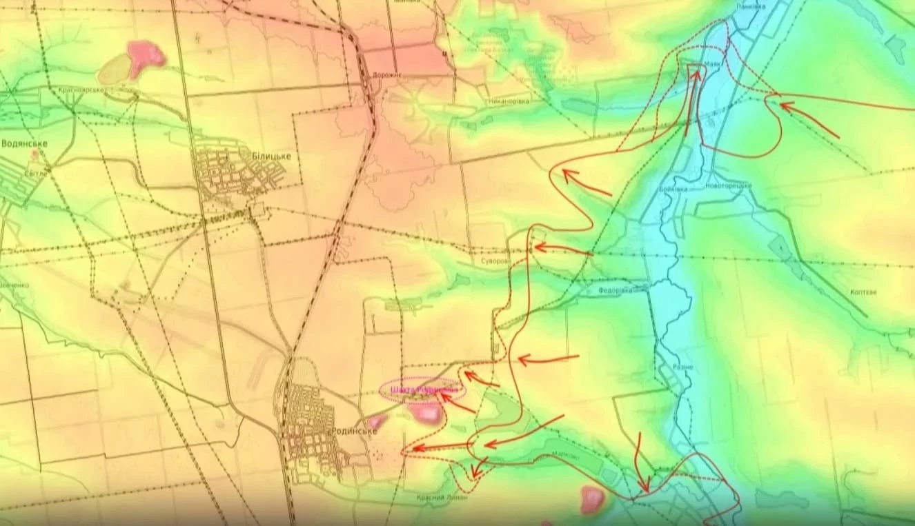 "Таким образом, наступающая группировка переходит к фазе активного охвата, с явной перспективой в краткосрочном горизонте выйти на восточную окраину Родинского и пройти город справа налево, что станет предпосылкой к зачистке и возможному падению всего восточного сектора обороны Покровско-Мирноградского узла", - отмечает источник.