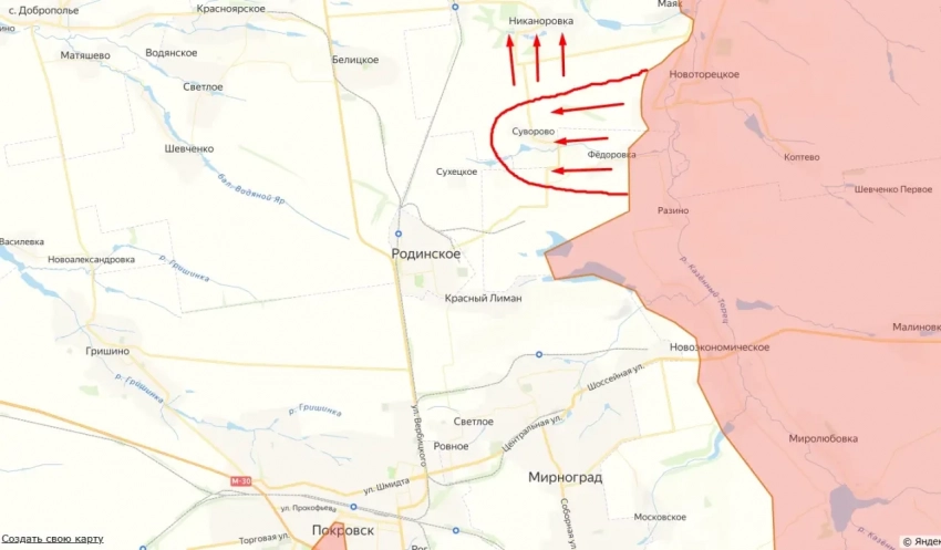 Источники сообщают о переходе под полный контроль ВС РФ села Суворово, которое режим Зеленского переименовал в Затышок. Населённый пункт расположен северо-восточнее Покровска, внутри которого уже идут бои. На данный момент известно, что наши бойцы завершают зачистку окраин села от остатков гарнизона ВСУ.