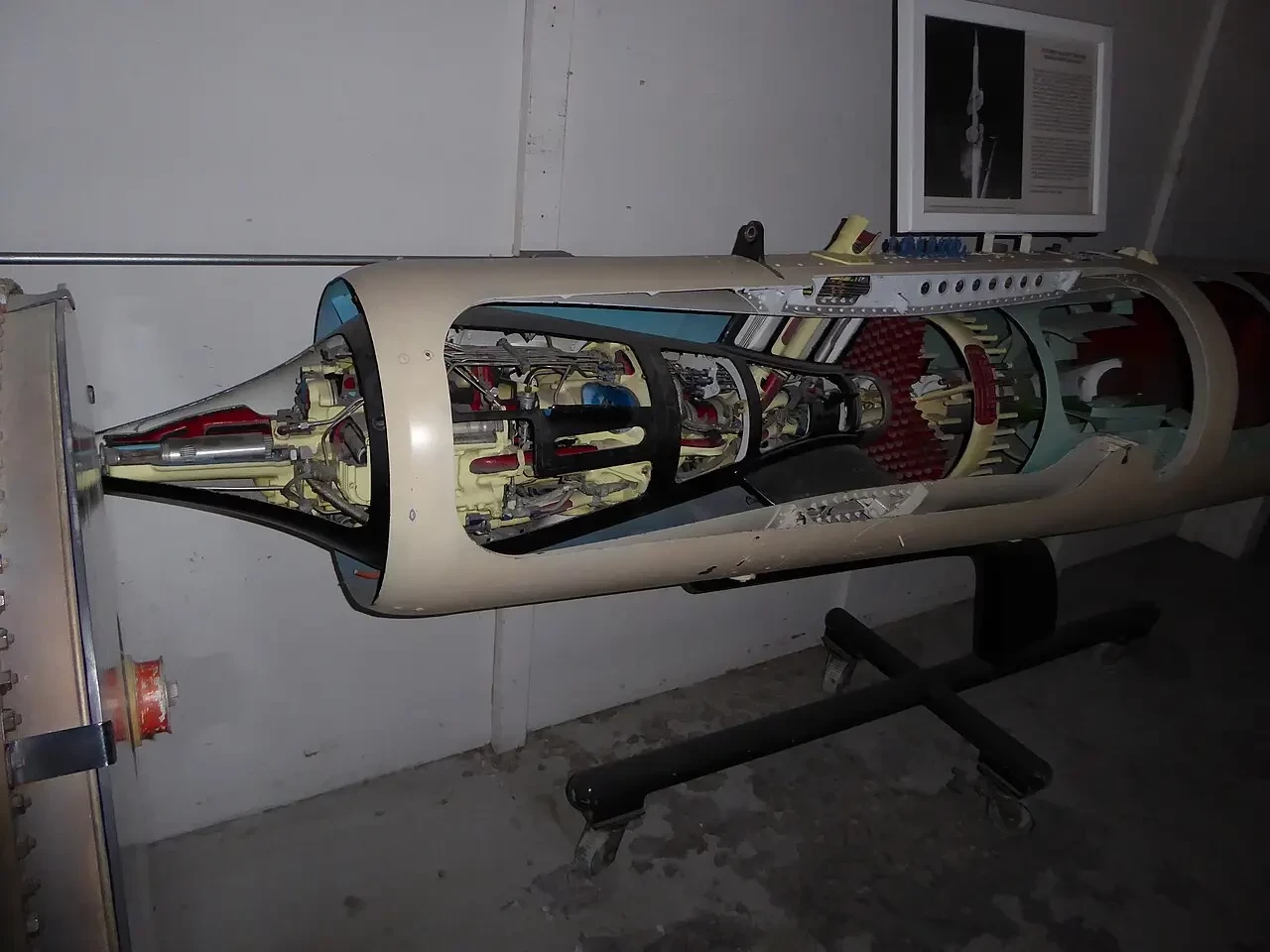 Прямоточный воздушно-реактивный двигатель Marquardt RJ43-MA-9 в разрезе, выставленный в Музее авиации и астронавтики Сан-Диего, пристройке к аэродрому Джиллеспи-Филд, Сан-Диего, Калифорния. Модифицированная версия этого двигателя использовалась в качестве двигателя для D-21