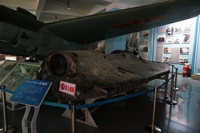 Фотография обломков D-21B, потерянного в Китае во время четвёртого и последнего полёта Senior Bowl, выставлена в Китайском музее авиации