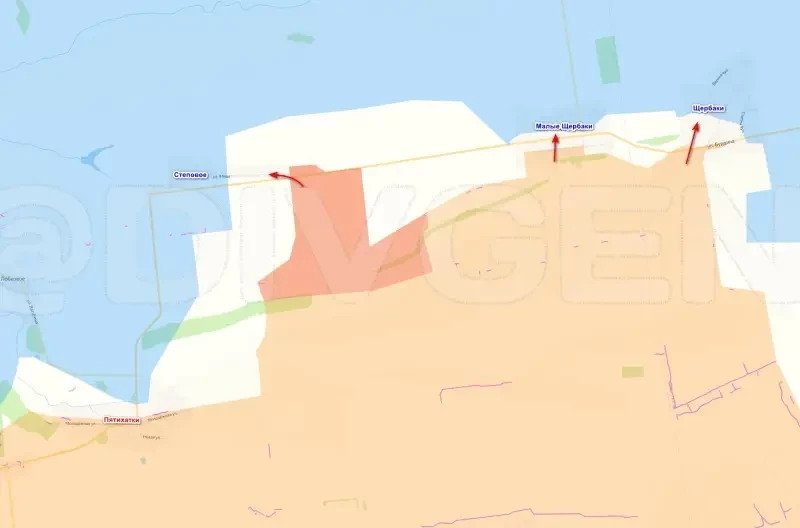 Штурмовые подразделения ВС РФ сегодня активизировались на Запорожском направлении, продвинувшись сразу на нескольких участках. Сначала пришла информация, что наши пошли вперед в районе сел Малые Щербаки и Щербаки, а затем атаковали в районе расположенного западнее Малых Щербаков населенного пункта Степовое. По имеющимся данным, штурмовики зашли на восточную окраину села. По-видимому, далее продвижение пойдет по единственной улице 9 мая, пересекающей все Степовое.