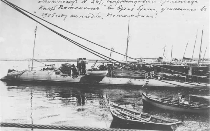 А вот на следующей серии, можно сказать, что «шестаковский» подход к делу начал заканчиваться. Постепенно, понемногу, но заканчиваться. Серия миноносцев типа «Пернов» была заказана уже вполне солидной — 25 единиц. Но это уже другая история. Пока же можно напомнить один из слабо освещённых моментов в истории первых русских миноносцев. А именно — «участие» миноносца №267 в восстании на броненосце «Потёмкин». Кавычки в данном случае вполне к месту. Дело в том, что, несмотря на заверения советской историографии о том, что экипаж миноносца поддержал бунт на «Потёмкине», это не совсем так, а точнее — совсем не так! Миноносец был восставшей командой броненосца захвачен.