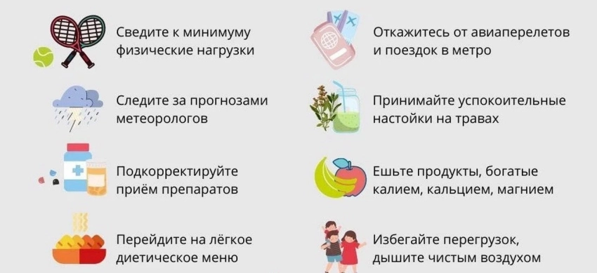 Врачи советуют в подобные дни минимизировать физические нагрузки, правильно питаться и полностью отказаться от любых вредных привычек, дабы не спровоцировать ухудшение самочувствия.
