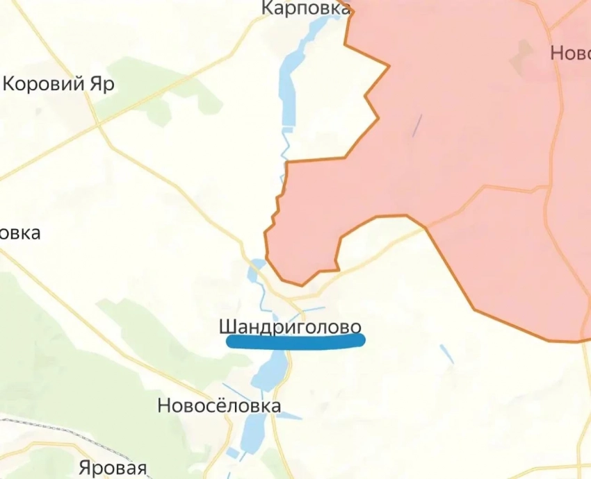 Сообщается, что нашим силам удалось продвинуться в районе населённого пункта Шандриголово, что примерно в 24 километрах к северо-западу от донецкого города Красный Лиман.