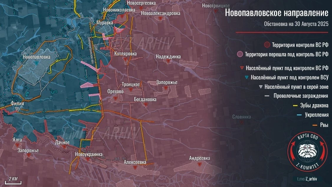 Карта боевых действий на Украине. Обстановка в зоне СВО на 31.08.2025