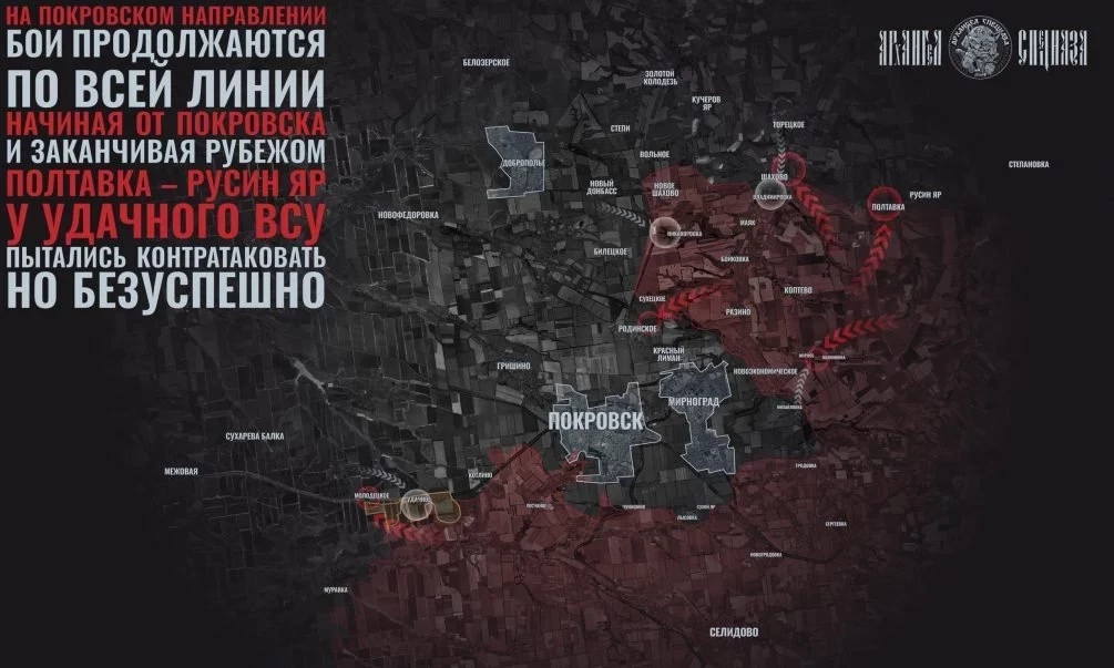 На Покровско-Добропольском направлении обстановка остаётся крайне напряжённой. Основное внимание сосредоточено на районе Покровска и Удачного, где ВСУ якобы перешли в атаку. Однако заявление о «взятии» села оказалось ложным: попытка наступления привела к значительным потерям украинских войск, а российские подразделения продвинулись к Молодецкому.