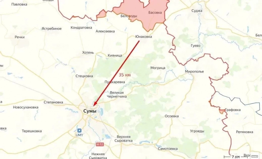 В Сумском приграничье позиционные бои идут по линии Кондратовка- Юнаковка. В Юнаковке наши борются за каждый метр, по данным с мест, смогли продвинуться на полкилометра южнее села.