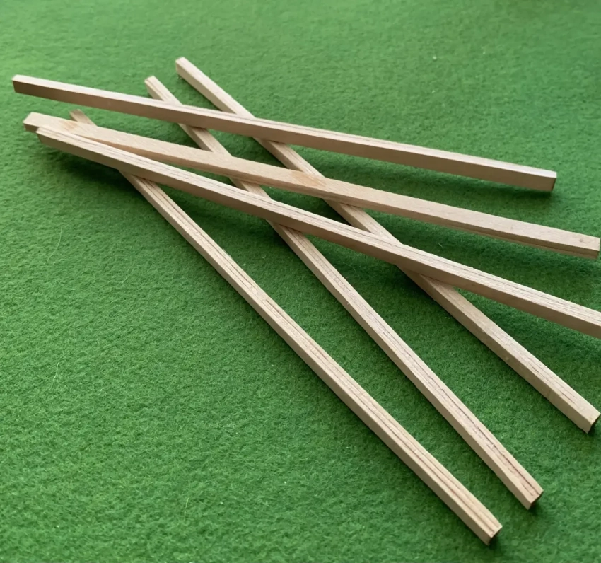 Наиболее трудоемкая деталь башни – лестница, что ведет на ее верхнюю площадку. Для ее изготовления потребуются две рейки квадратного сечения от компании «АВ-модель», в которых с шагом 5 мм просверливаются отверстия диаметром 1 мм. В масштабе 1:72, в котором как раз и делается наша модель башни, высота лестницы составит 170 мм. В отверстия вставляются зубочистки, смазанные клеем.