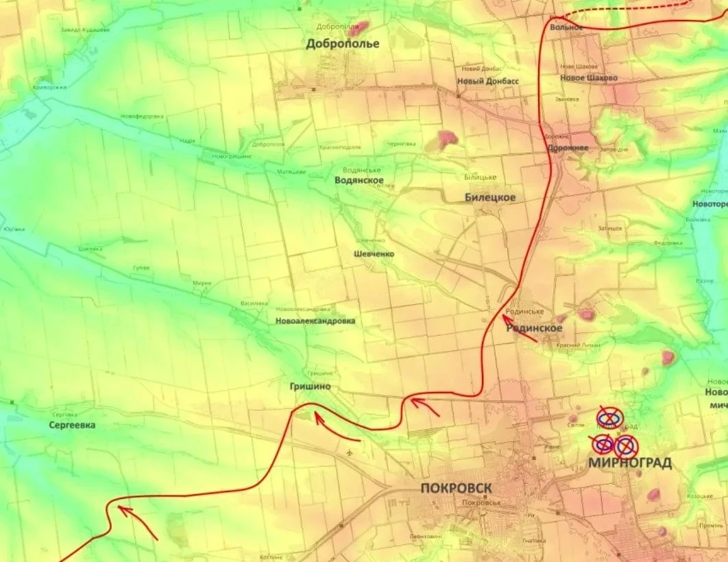 Важным событием минувших суток стало фактическое завершение войсковой операции в районе Мирнограда (бывший Димитров). По данным Юрия Подоляки, штурмовые подразделения ВС РФ полностью зачистили населенный пункт Светлое, расположенный к северо-западу от городской черты.