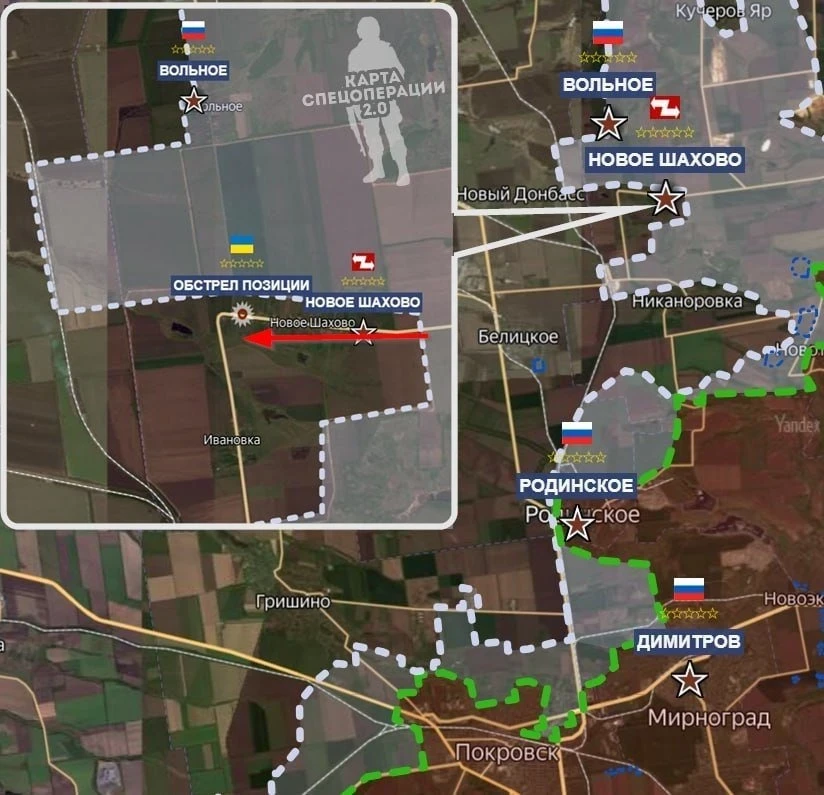 Российские войска продвинулись западнее Димитрова, давят в направлении Гришино.