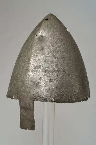 К древнейшим образцам этой формы относится и шлем Святого Вацлава, состоящий из нескольких частей, с прикрепленным спереди железным наносником. Эта форма шлема, пришедшая с Востока, вплоть до XVII века сохранялась у арабов, персов и тюркских народов. В XI веке в северных странах и в Италии используется шлем такой же конусообразной формы, и тоже с наносником. В Польше в свое время был найден похожий шлем, сделанный из меди, склепанный из двух половин и украшенный бронзой и позолотой.
