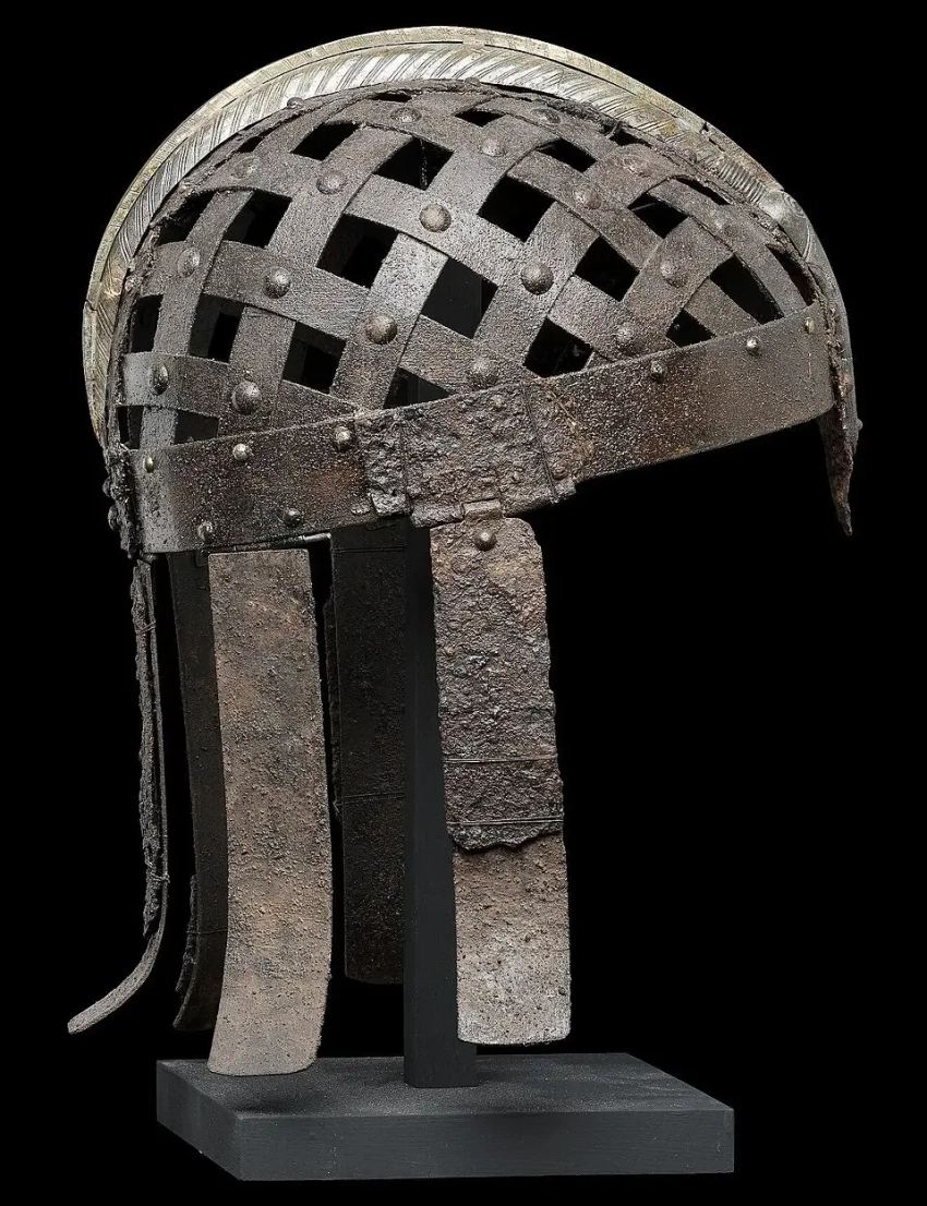 Железный шлем «Вендель-1», относящийся к VII в. Найден в погребальной ладье №1 в Венделе, Уппланд, Швеция. Государственный исторический музей, Стокгольм