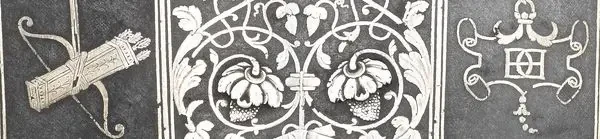 Три переплетённых полумесяца в украшениях доспеха повторяются несколько раз и явным образом указывают на род Валуа. В частности, в гербе графства Ангулем в составе герцогства Валуа, помимо трех золотых лилий и серебряного пояса, на каждой из трех его подвесок была изображена красная луна. Музей армии. Париж