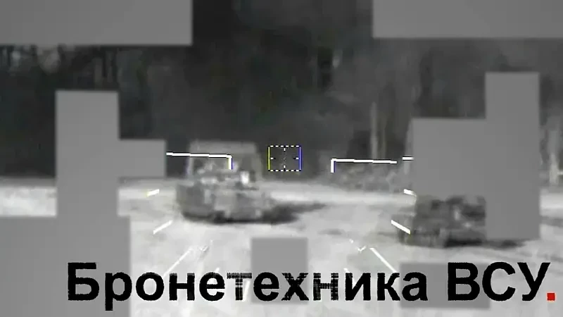 В прицел вертолетов попали как движущиеся американские БМП M2A2 Bradley ODS-SA и танк, так и брошенные инженерные машины ВСУ. Причем, судя по кадрам, работали по противнику наши пилоты с достаточно близкого расстояния в темное время суток.
