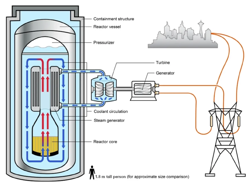 В качестве иллюстрации к материалу представлена принципиальная схема американского легководного модульного атомного реактора на 300 МВт.