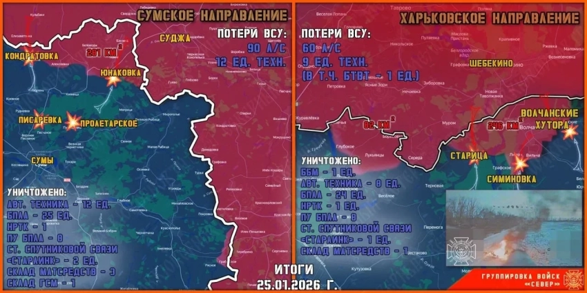 ВС РФ развивают наступление на многих фронтах СВО: свежая карта боевых действий на 26 января 2026