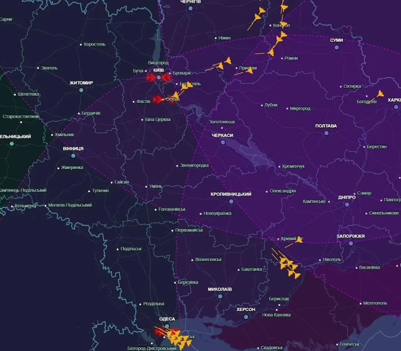 Российские войска наносят удары по объектам на подконтрольных противнику территориях. К настоящему моменту известно об использовании БПЛА типа «Герань» в ряде регионов, включая Киевскую, Харьковскую, Одесскую, Днепропетровскую области.