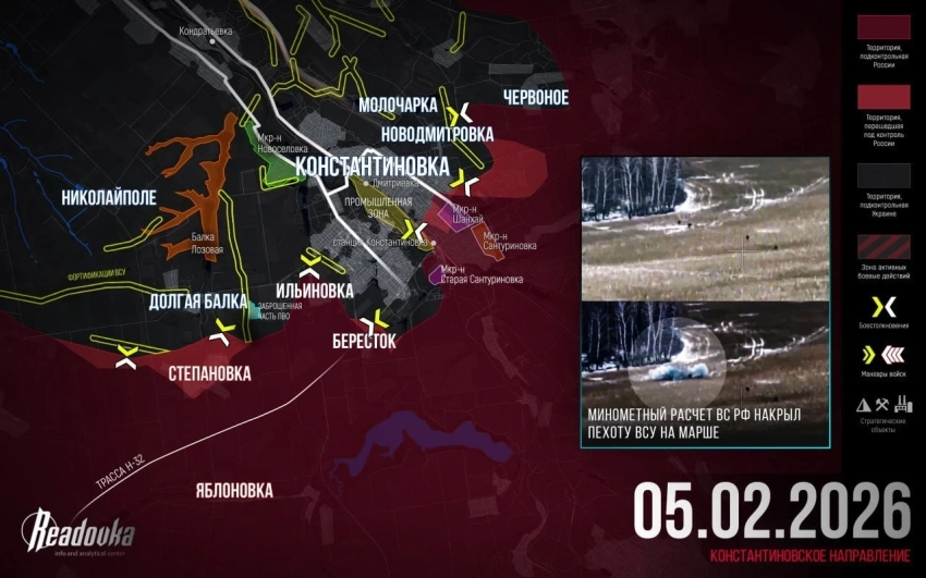 Финальный этап у Константиновки и «огневой карман» в Зализничном. Карта СВО на 6 февраля
