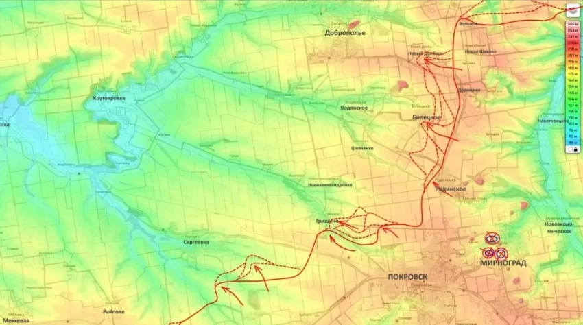 Успех развивается не только в самом населенном пункте, но и на флангах. К северо-востоку от Гришино российские силы продвигаются в направлении Новоалександровки. Параллельно фиксируется оживление боевых действий в районе города Белицкое (около 20 км от гришинских позиций), где также идут интенсивные накаты на позиции ВСУ.