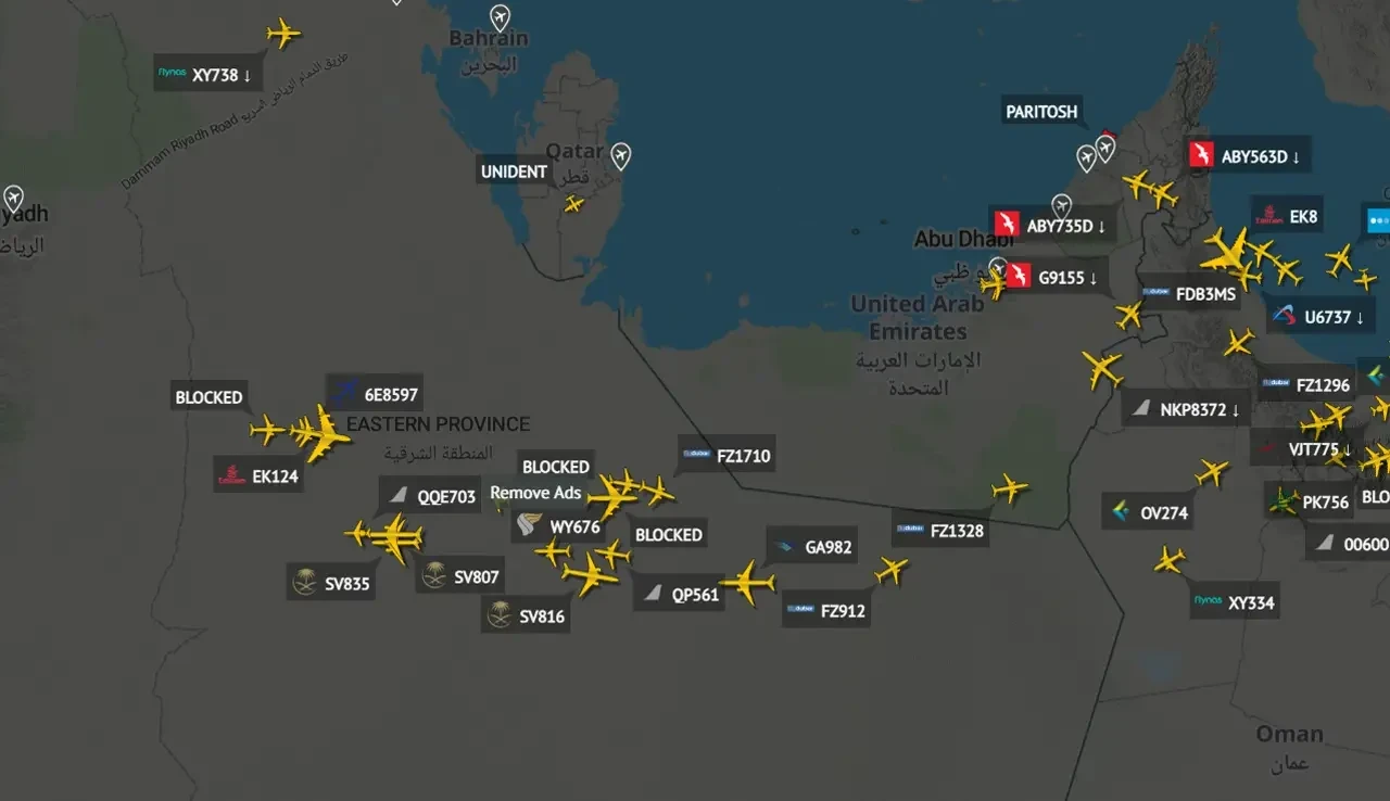 На данный момент взрывы гремят в Абу-Даби и Дубае. Самолёты вынуждены в экстренном порядке менять маршрут. Так борт из Найроби оказался вынужден в последний момент уходить от границ ОАЭ и лететь через соседний Оман.