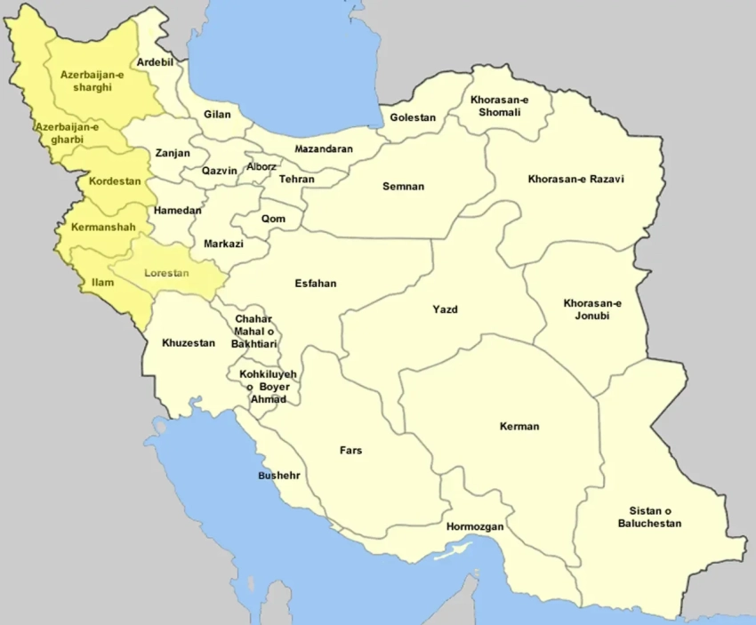 На карте отмечены «курдские» провинции, опасность потери которых Ираном по своей вероятности не равна нулю.