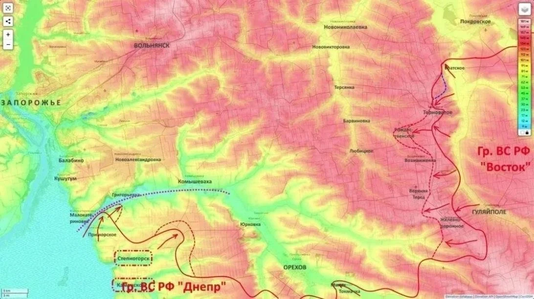 Успешные для ВС РФ бои идут на подступах к Гуляйполю, окраинах Верхней Терсы и близ Воздвиженки. Как отмечает Подоляка, заявления украинской пропаганды о «контроле над территориями» здесь фиктивны - участок представляет собой широкую «серую зону», где идут маневренные бои.