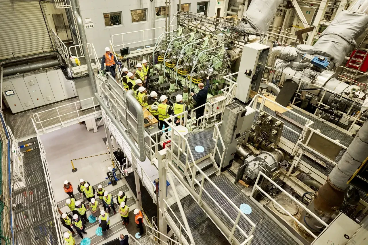 Полномасштабный семицилиндровый двигатель 7S60ME-C10.5-LGIA-HPSCR на испытательном стенде