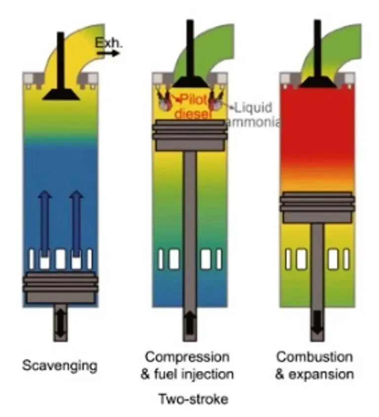 Рабочий цикл двухтактного аммиачного двигателя