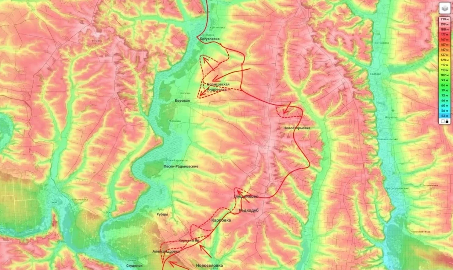 Что касается Боровского участка фронта, то здесь продолжаются активные наступательные действия российских бойцов в районе Боровой с северо-востока.