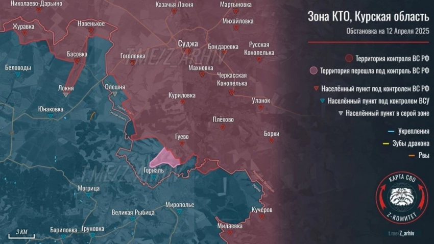 В Курской области продолжаются ожесточённые бои в районе Горналя: свежие данные на 13.04.2025
