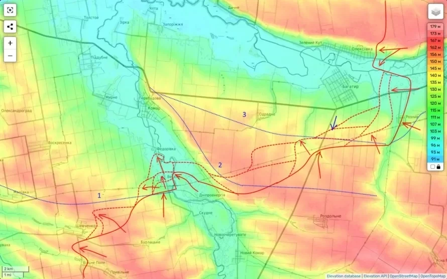 Юго-западнее Богдановки ситуация для ВСУ остаётся критической. Недостаток резервов вынуждает украинские силы сосредотачиваться на локальных контратаках, которые не приносят значительных результатов. В районе населённых пунктов Богатырь и Отрадное противник пытается сдерживать продвижение российских войск, однако утрата удобных позиций, особенно в районе Днепроэнергии, серьёзно подорвала устойчивость их обороны.