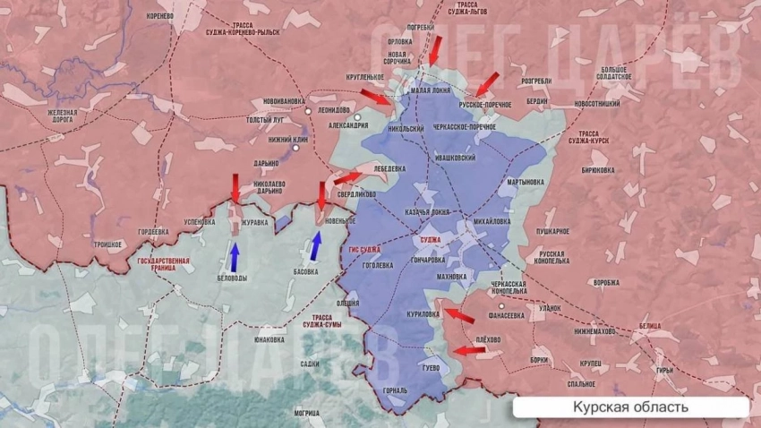 К настоящему моменту российские штурмовые подразделения продвигаются юго-западнее Мелового и уже вышли к автомобильной дороге, которая ведёт в Сумскую область. Это местная дорога, по которой ВСУ в последние месяцы осуществляли снабжение своего гарнизона в Судже. Перерезание этого маршрута снабжения ещё больше осложняет для противника ситуацию со снабжением на оккупированных им территориях Курской области и фактически делает невозможной ротацию по так называемому южному маршруту - через Меловой и Гончаровку.