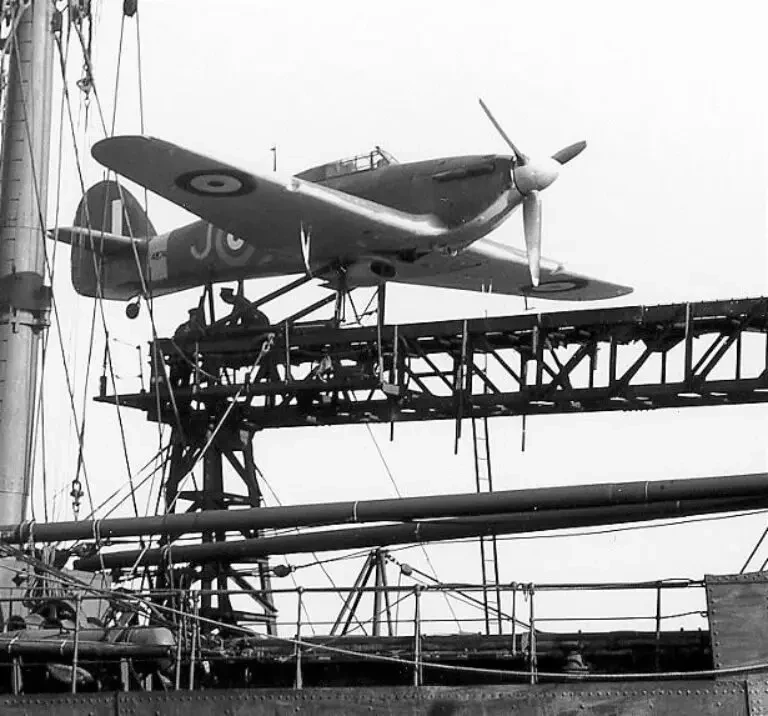 Да, кстати, такой еще нюанс: ускорители могли вытолкнуть с катапульты самолет максимальным весом около 3400 кг. Нормальный взлетный вес обычного «Харрикейна», без усилений, составлял около 3000 кг, так что о подвесных баках и прочих удовольствиях можно было не мечтать. Учитывая еще необходимость брать на борт спасательный набор – так себе перспектива.