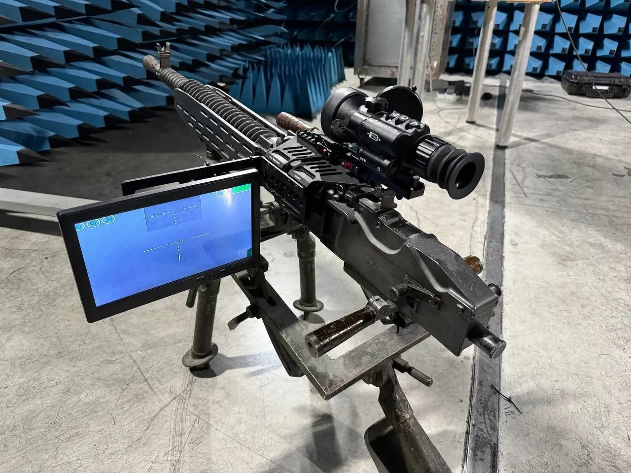 Тепловизионный прицел на пулемёте с выводом изображения на дисплей. Изображение «Лаборатория ППШ» / ТГ-канал «Осведомитель»