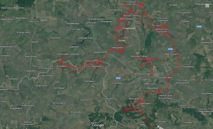То есть блокада транспортных путей и уничтожение мостов (а как раз три моста, которые были из-за халатности противника нами уничтожены, ведут в т.ч. и в Малую Локню, которая на той стороне от Старых Сорочин) дают результат. По крайней мере на северном выступе Суджанского выступа у противника уже несколько дней отсутствует ротация, подвоз, да и вообще полный швах.