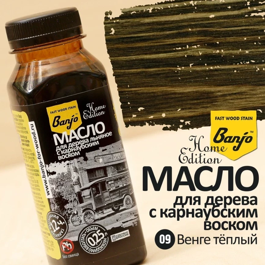 Масло-воск для дерева и мебели льняное с карнаубским воском Banjo Home Edition цвет венге