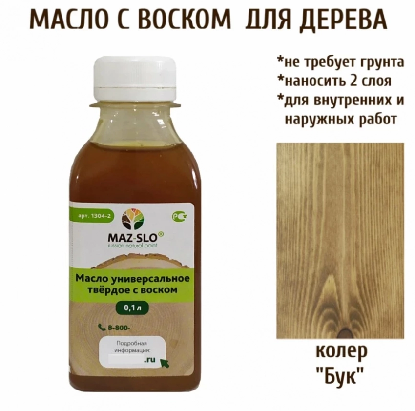 Масло твердое универсальное для наружных и внутренних работ с воском MAZ-SLO 100 мл цвет Бук