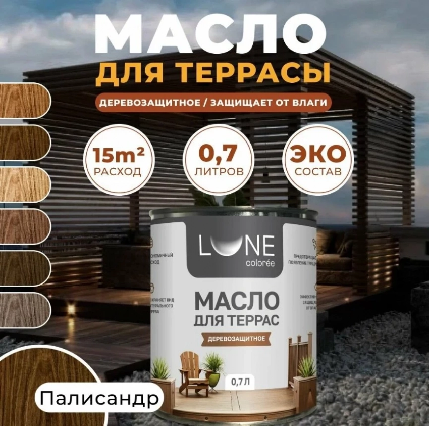 Масло для дерева, террас и мебели с воском Lune Coloree палисандр, 0,7л