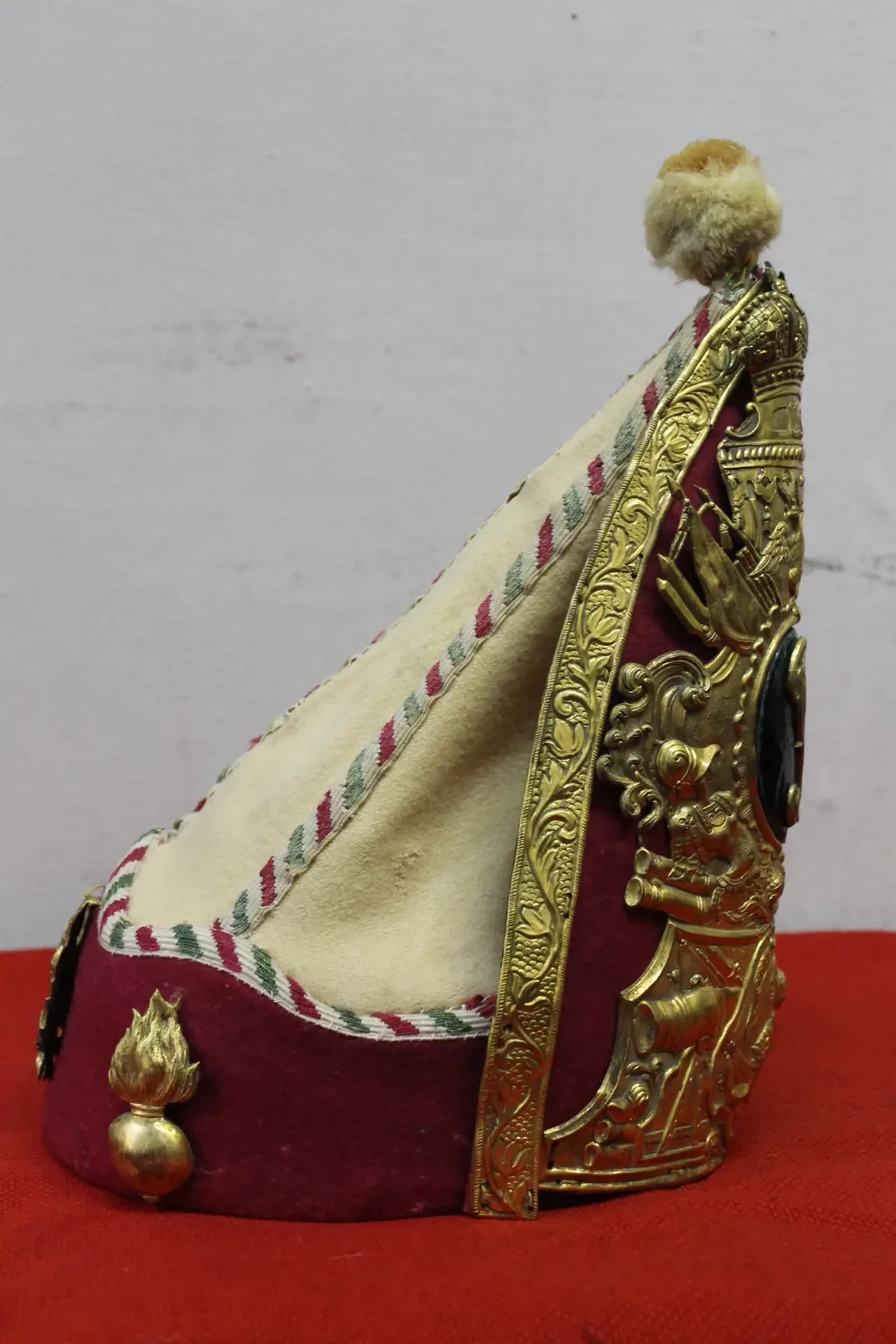 Эта же гренадерка, вид сбоку. Ткань вряд ли могла сохраниться так хорошо с того времени. Но если это и новодел, то очень хороший. Пензенский областной краеведческий музей. Фотография автора