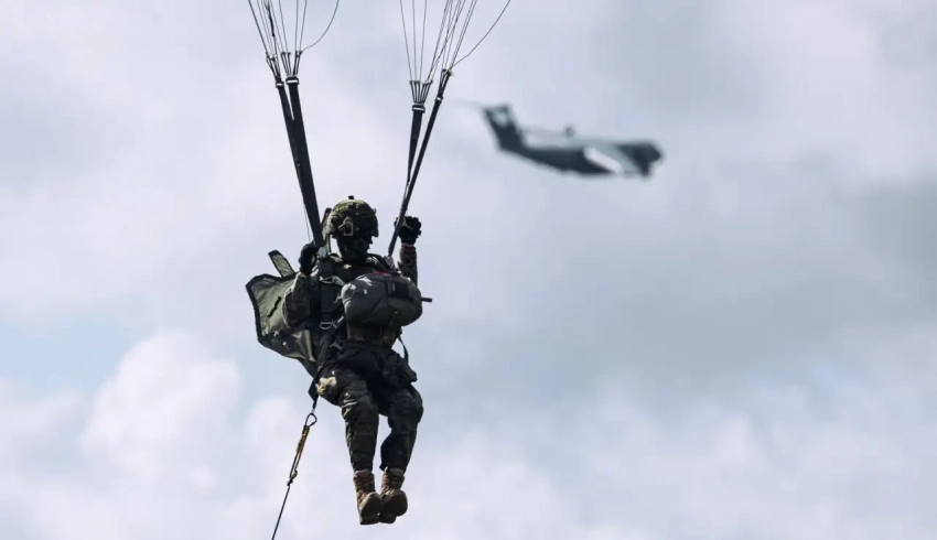 Соответствующее видео было показано в сети. На нём запечатлено десантирование с двух бортов Airbus A400M ВВС Испании. Вслед за высадкой испанцев к манёврам в Латвии должны подключиться подразделения 173-й воздушно-десантной бригады армии США, после чего последуют «учения с боевой стрельбой».