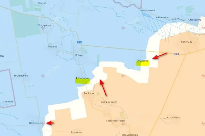 Штурмовые подразделения группировки войск «Восток» продвинулись от Днепроэнергии, ликвидировав карман с востока от Веселого и выйдя практически к окраинам Федоровки по правому берегу реки Мокрые Ялы. Кроме того, наши продвинулись и между Федоровкой и Отрадным. Как утверждают российские ресурсы, на данный момент в районе самой Федоровки активных боевых действий нет, а вот восточнее бои идут весьма активные, наши пробиваются к Отрадному со стороны Богатыря.