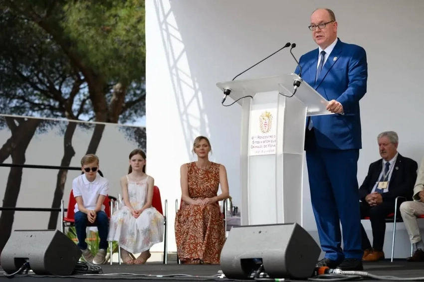 Князь Альбер и княгиня Шарлен с детьмиКнязь Альбер, сын звезды Голливуда Грейс Келли, отметил три исторических места в Монако и после своей речи вручил памятные таблички восьми приглашенным мэрам.